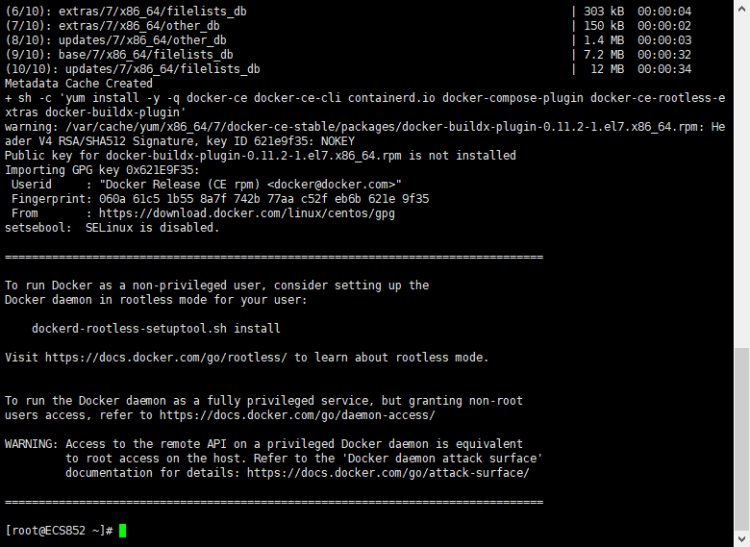 8.安装docker,这一步安装过程有点久,5-20分钟左右