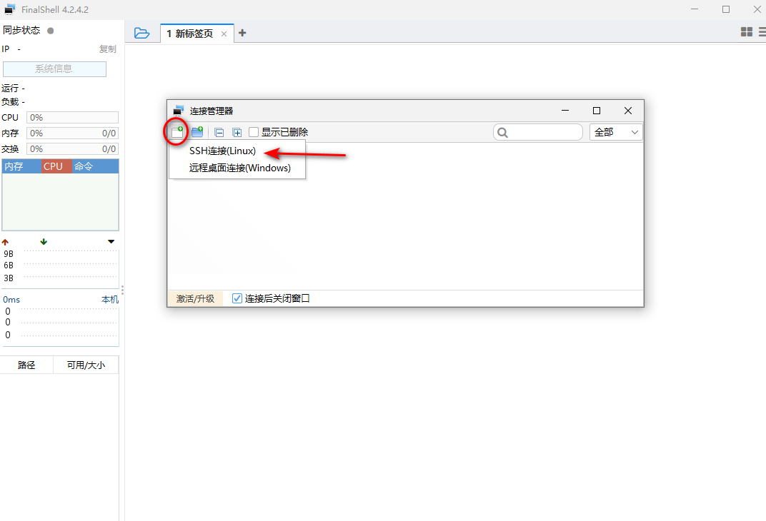 2. 会跳出个窗口,接着点击箭头所示按钮,点击SSH链接